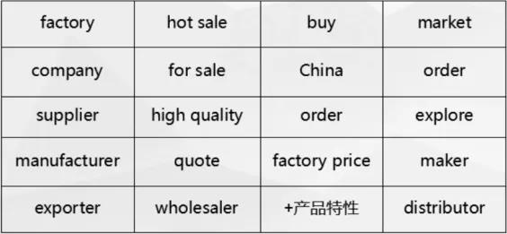 擴展關(guān)鍵詞,加衍生詞,如supplier,manufacture,wholesale,exporter等;