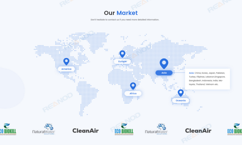 除此之外,終稿還精心設(shè)計(jì)了“我們的市場(chǎng)”板塊,直觀地呈現(xiàn)出產(chǎn)品在全球范圍內(nèi)的銷售布局與覆蓋區(qū)域。通過具體地圖,展示了品牌的全球化戰(zhàn)略布局與市場(chǎng)拓展成果,讓外商對(duì)品牌的市場(chǎng)競(jìng)爭(zhēng)力有了更直觀、深刻的認(rèn)知。