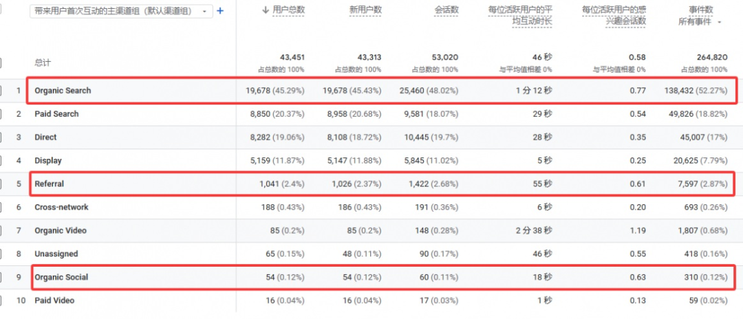 經(jīng)過(guò)持續(xù)的運(yùn)營(yíng)優(yōu)化,目前賽森特有220個(gè)重點(diǎn)關(guān)鍵詞參與谷歌排名,其中145個(gè)核心關(guān)鍵詞排到前兩頁(yè)。在2024年5月—2025年5月的一年周期內(nèi),網(wǎng)站收獲用戶43451個(gè),會(huì)話數(shù)53020個(gè),事件數(shù)264820次,其中自然搜索、外鏈帶來(lái)用戶數(shù)20719個(gè),會(huì)話數(shù)26888個(gè),事件數(shù)146029次。這些數(shù)據(jù),充分體現(xiàn)了自然優(yōu)化能夠有效吸引搜索引擎,激發(fā)非付費(fèi)流量的增長(zhǎng)活力,增強(qiáng)用戶粘性。