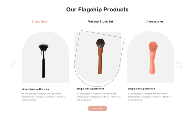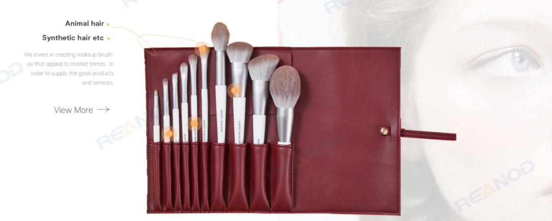 從網(wǎng)站的首屏設(shè)計(jì)來(lái)看,我們便能清晰地感受到化妝刷作為主角的重要地位。然而,由于化妝刷本身體積較小,若直接以單一產(chǎn)品大圖呈現(xiàn),難免會(huì)顯得單調(diào)乏味,缺乏視覺(jué)沖擊力。
