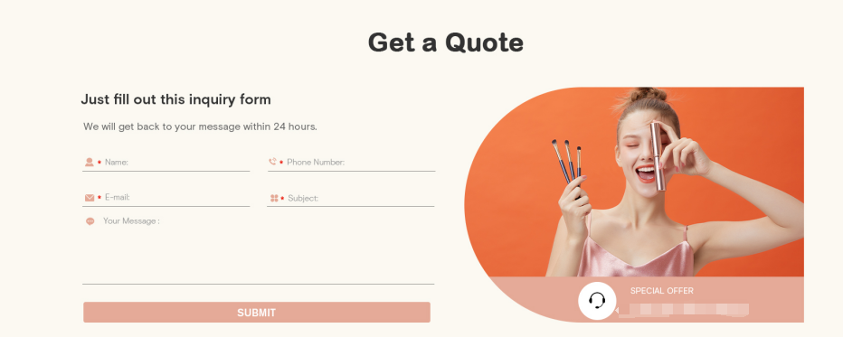 在這個(gè)網(wǎng)站中,小巧精致的化妝刷被反復(fù)呈現(xiàn),但由于每一張圖片都經(jīng)過(guò)精心拍攝與處理,品質(zhì)感突出,因此并不會(huì)讓人感到視覺(jué)疲勞。相反,訪客的視線被不斷吸引并聚焦于產(chǎn)品本身,能夠直觀、清晰地了解化妝刷的細(xì)節(jié)與質(zhì)感。這種視覺(jué)上的持續(xù)吸引力,也自然而然地提升了外商對(duì)品牌的好感與信任。